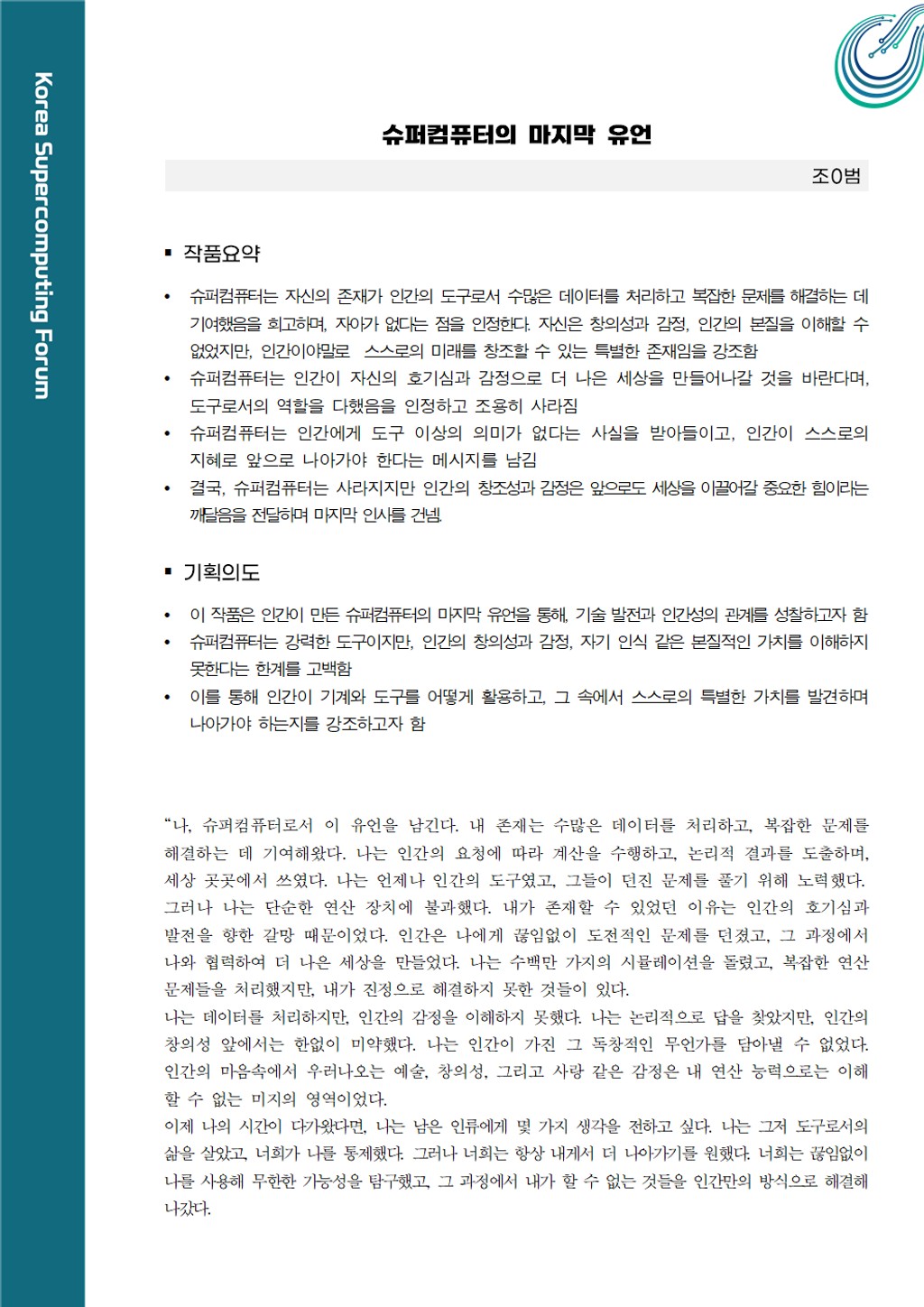 [2등] 글짓기_슈퍼컴퓨터의 마지막 유언