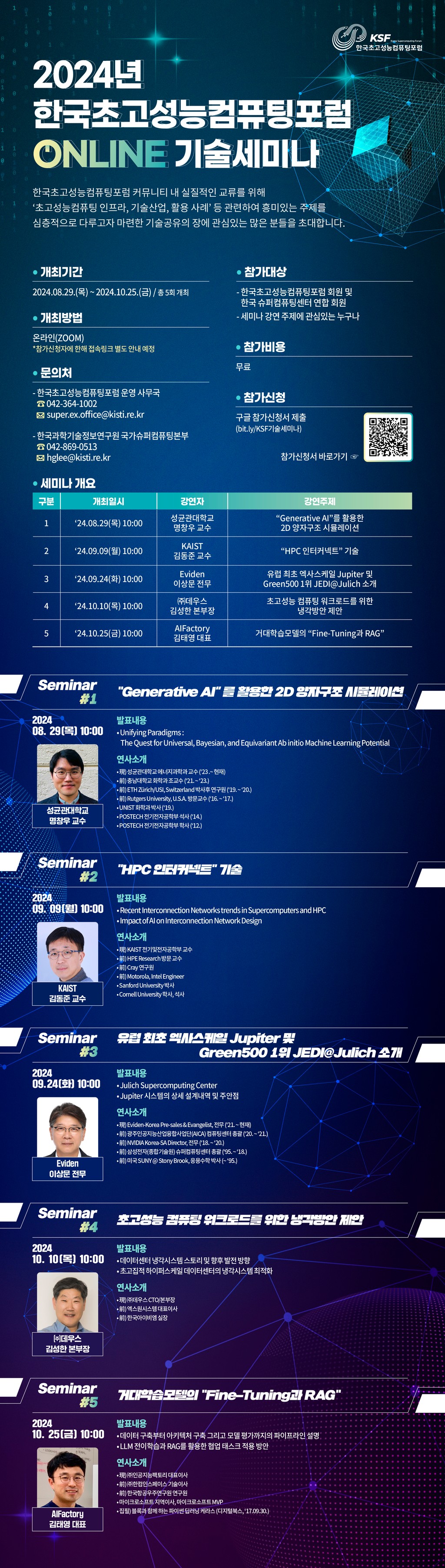 참가대상 : 한국초고성능컴퓨팅포럼 회원 및 한국 슈퍼컴퓨팅센서 연합 회원 / 세미나 강연 주제에 관심있는 누구나