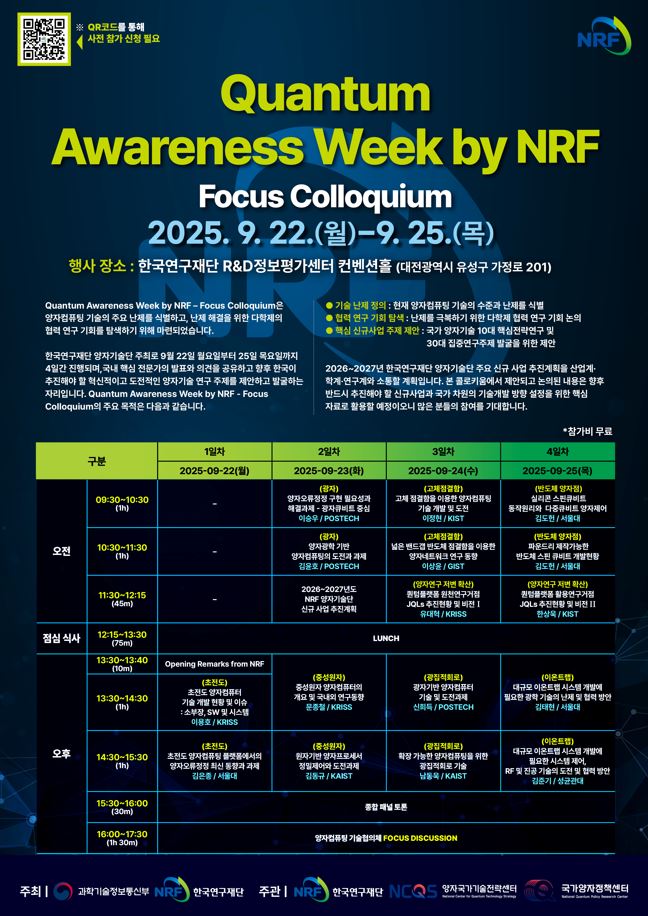 양자(Quantum)분야 산학연관 관계자분들의 많은 참여바랍니다.