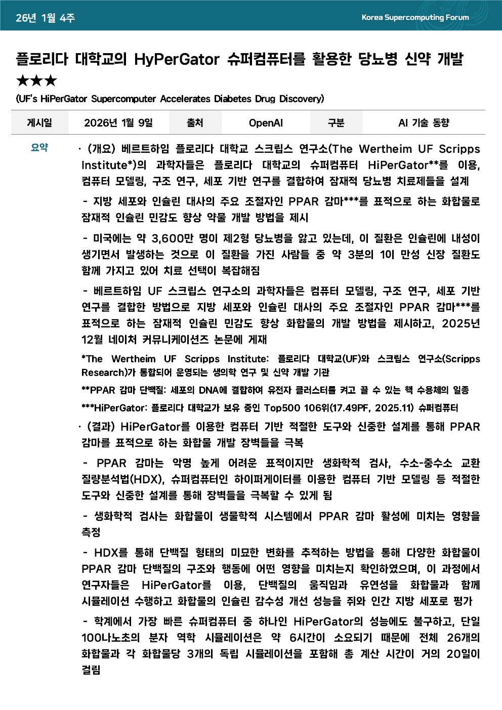 플로리다 대학교의 HyPerGator 슈퍼컴퓨터를 활용한 당뇨병 신약 개발 ★★★