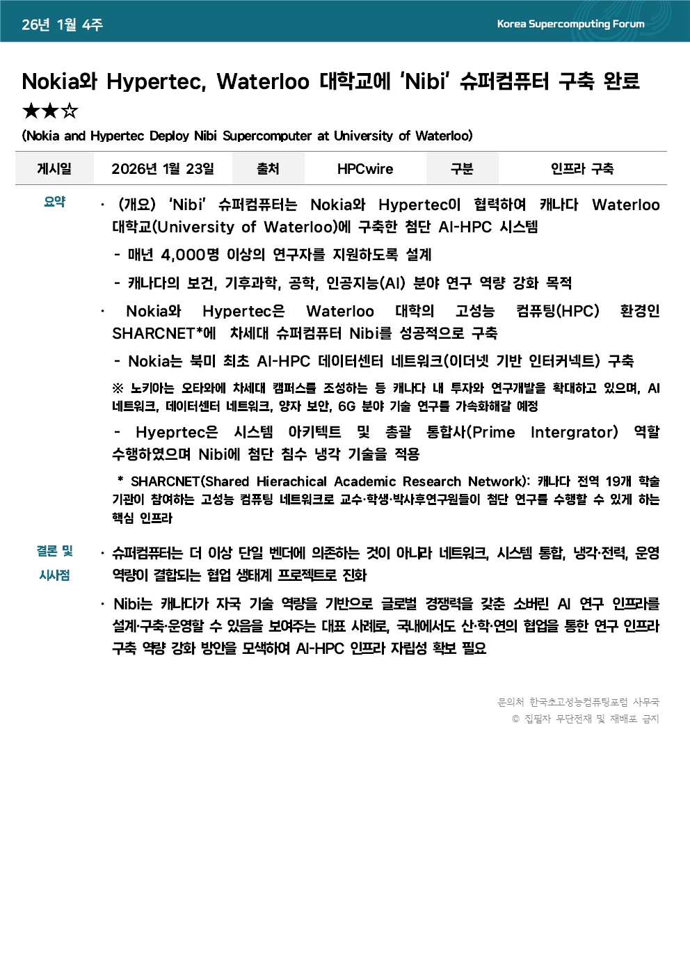Nokia와 Hypertec, Waterloo 대학교에 ‘Nibi’ 슈퍼컴퓨터 구축 완료 ★★☆