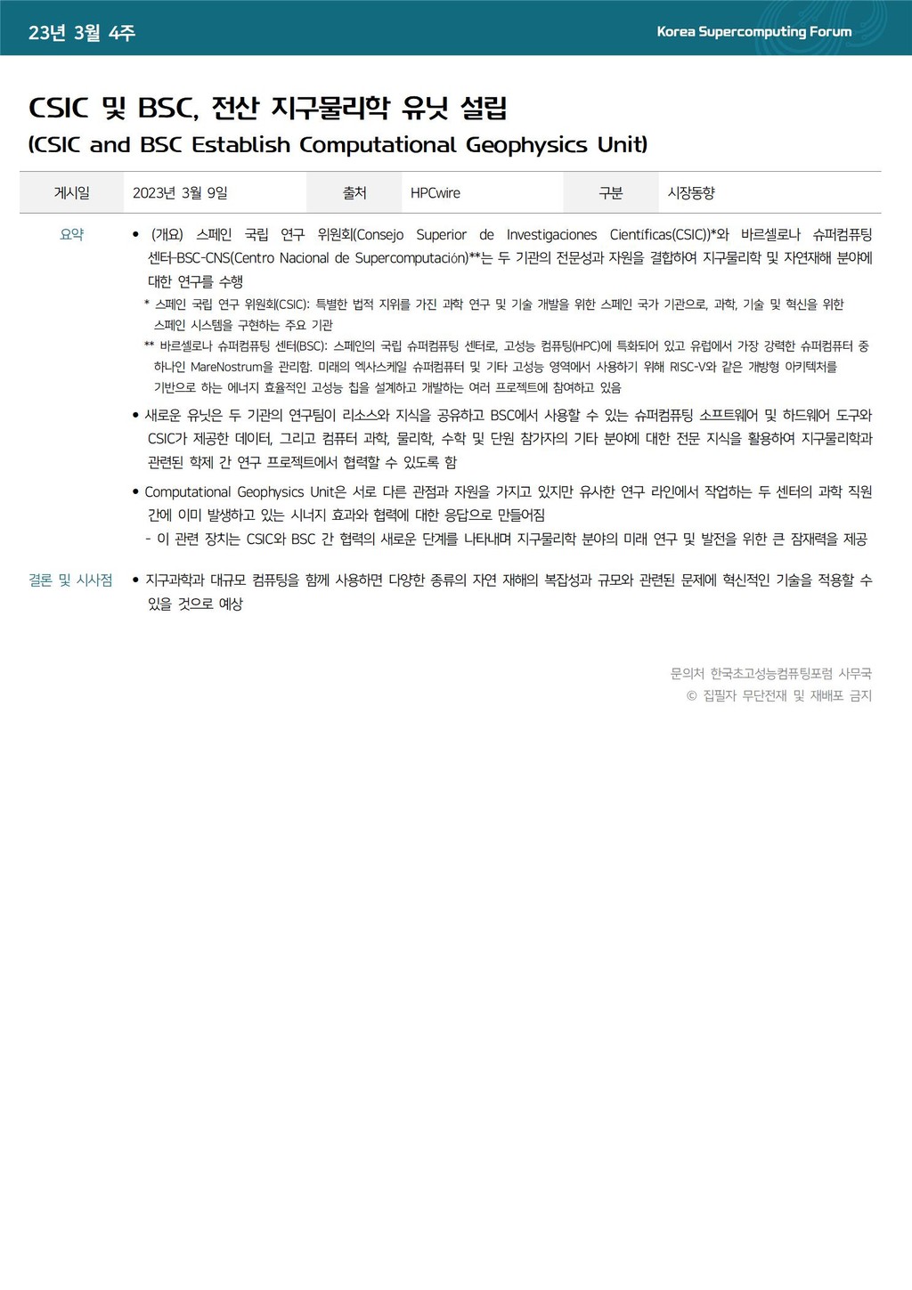 CSIC 및 BSC, 전산 지구물리학 유닛 설립