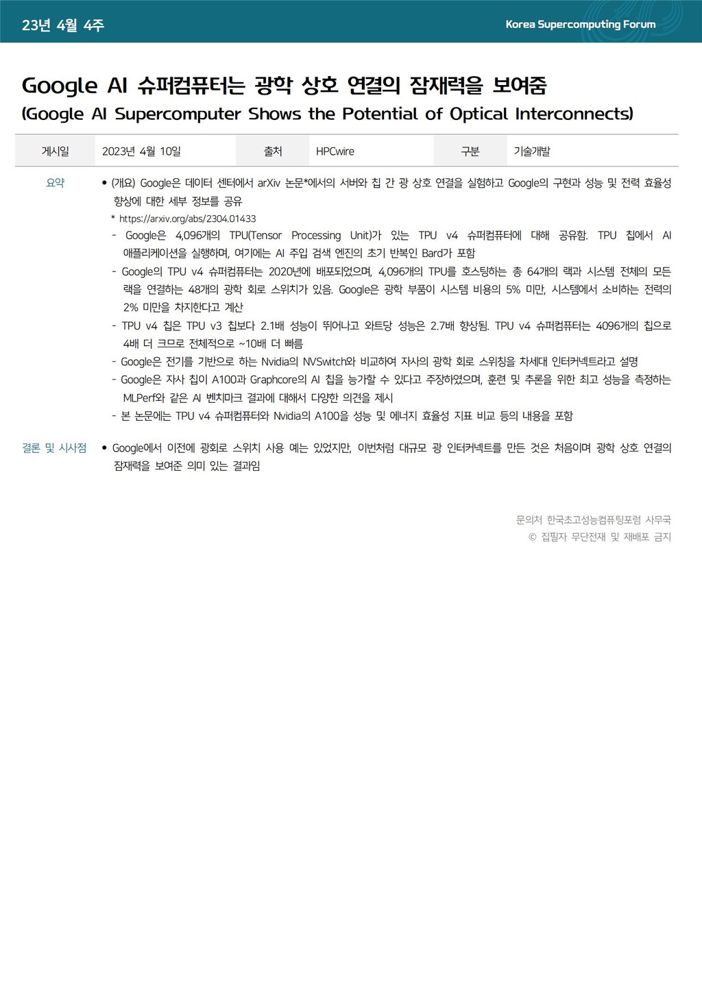 Google AI 슈퍼컴퓨터는 광학 상호 연결의 잠재력을 보여줌