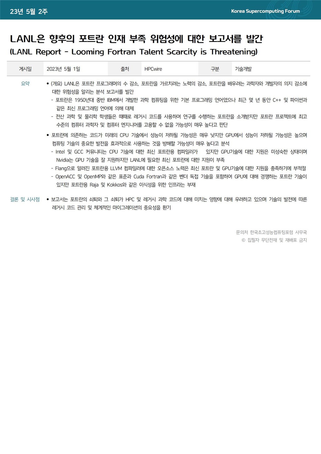 LANL은 향후의 포트란 인재 부족 위험성에 대한 보고서를 발간
