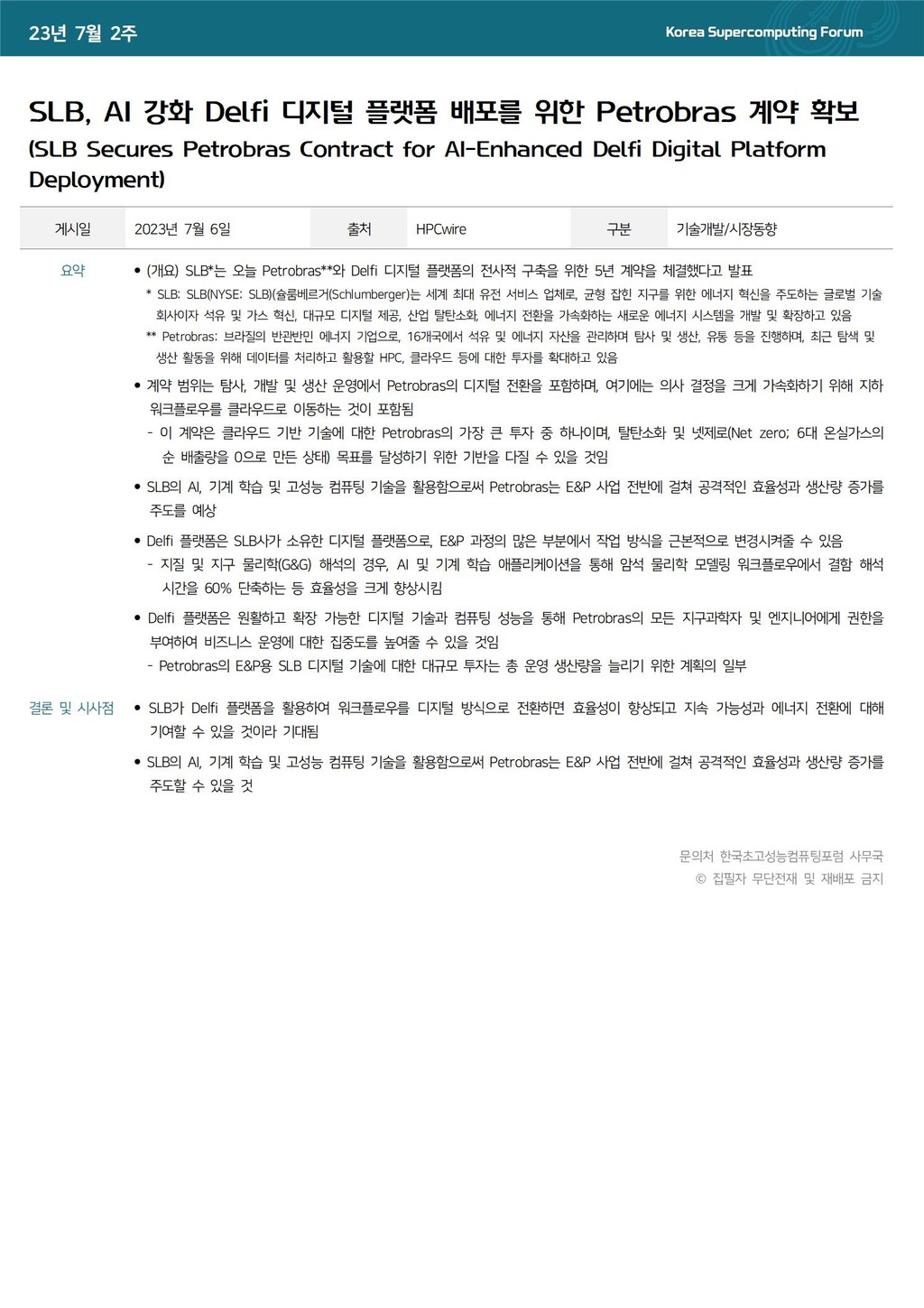 SLB, AI 강화 Delfi 디지털 플랫폼 배포를 위한 Petrobras 계약 확보