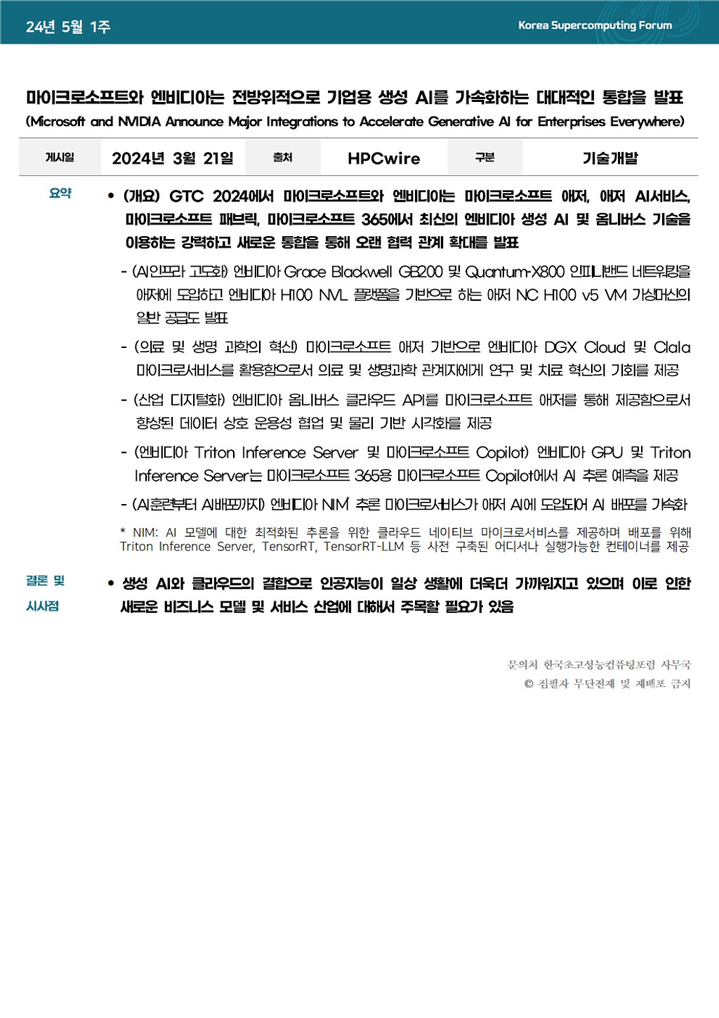 마이크로소프트와 엔비디아는 전방위적으로 기업용 생성 AI를 가속화하는 대대적인 통합을 발표