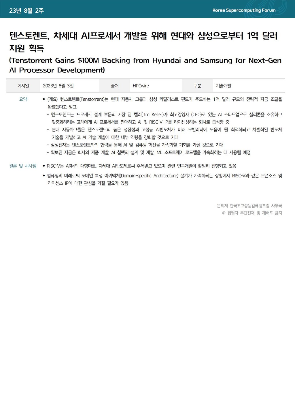 텐스토렌트, 차세대 AI프로세서 개발을 위해 현대와 삼성으로부터 1억 달러 지원 획득