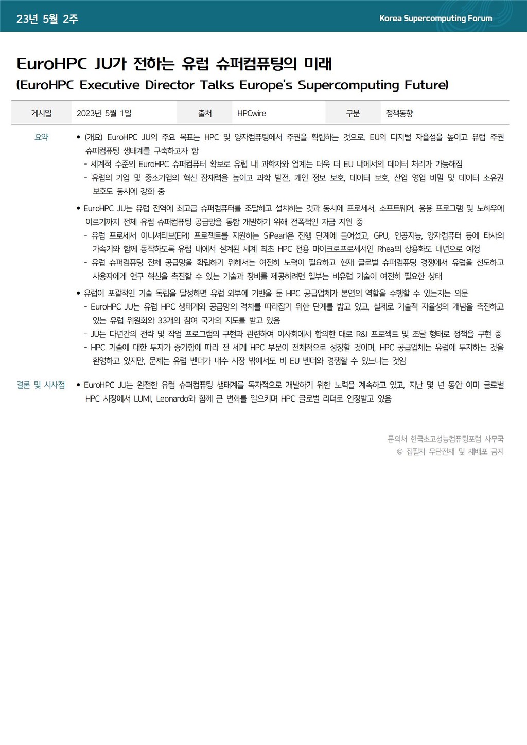 [동향] EuroHPC JU가 전하는 유럽 슈퍼컴퓨팅의 미래