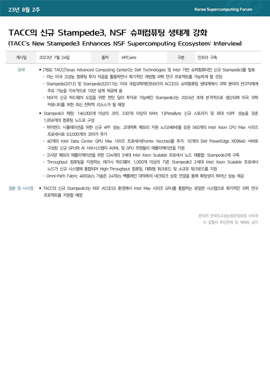 [동향] TACC의 신규 Stampede3, NSF 슈퍼컴퓨팅 생태계 강화