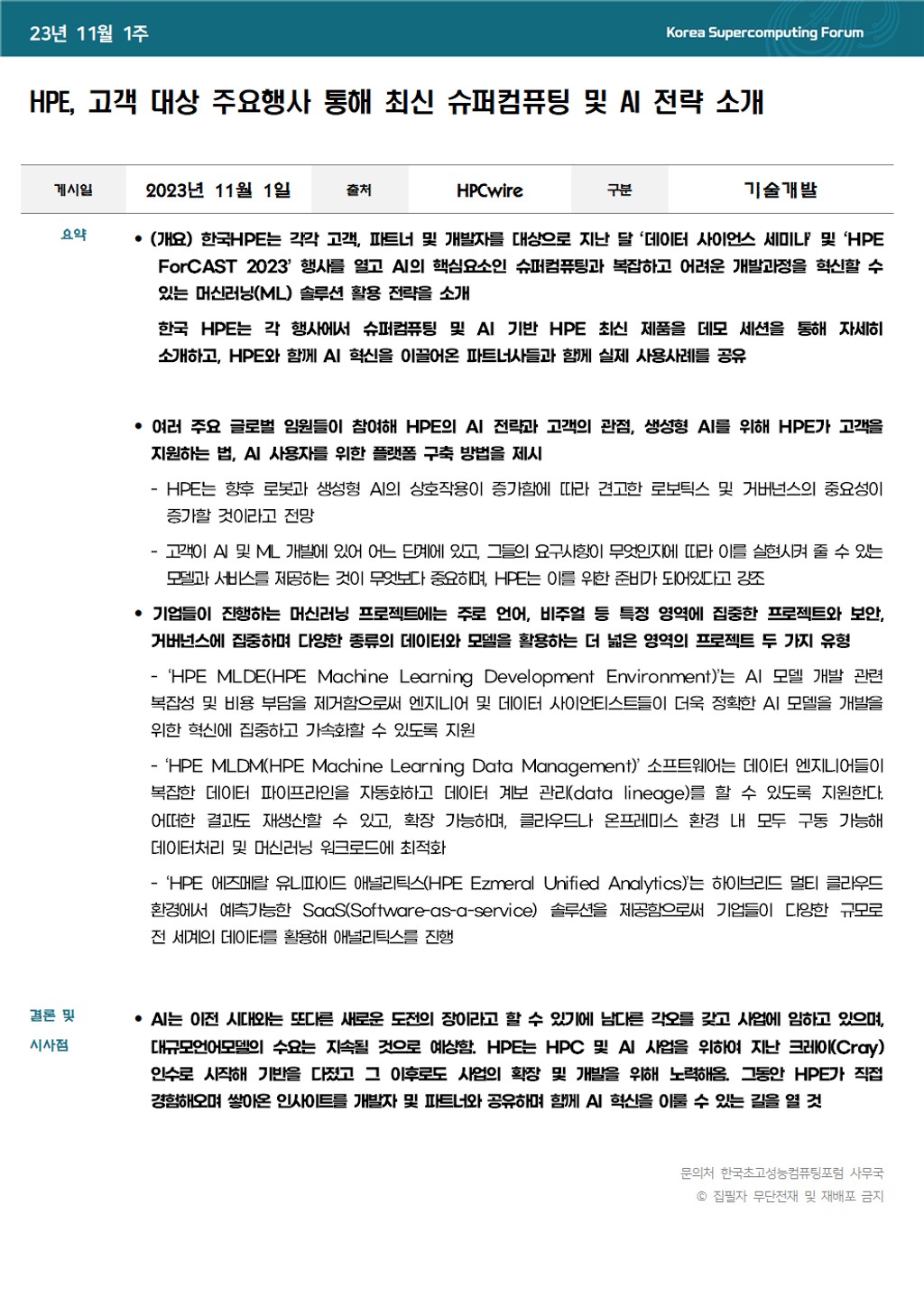 [국내] HPE, 고객 대상 주요행사 통해 최신 슈퍼컴퓨팅 및 AI 전략 소개