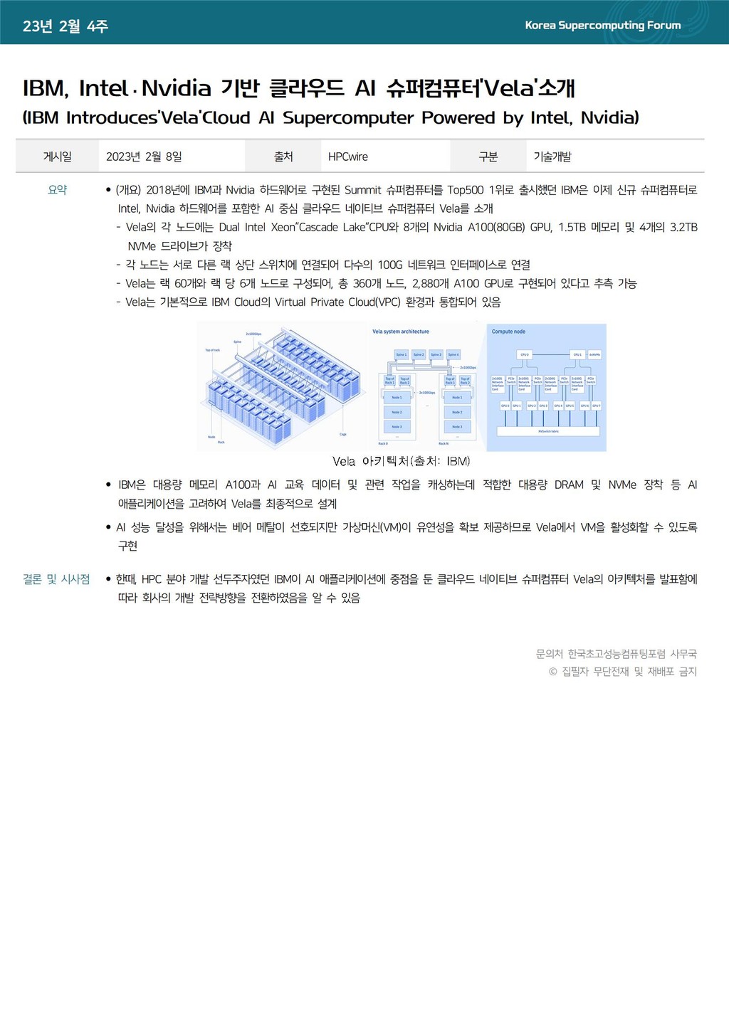 [동향] IBM, Intel·Nvidia 기반 클라우드 AI 슈퍼컴퓨터‘Vela’소개