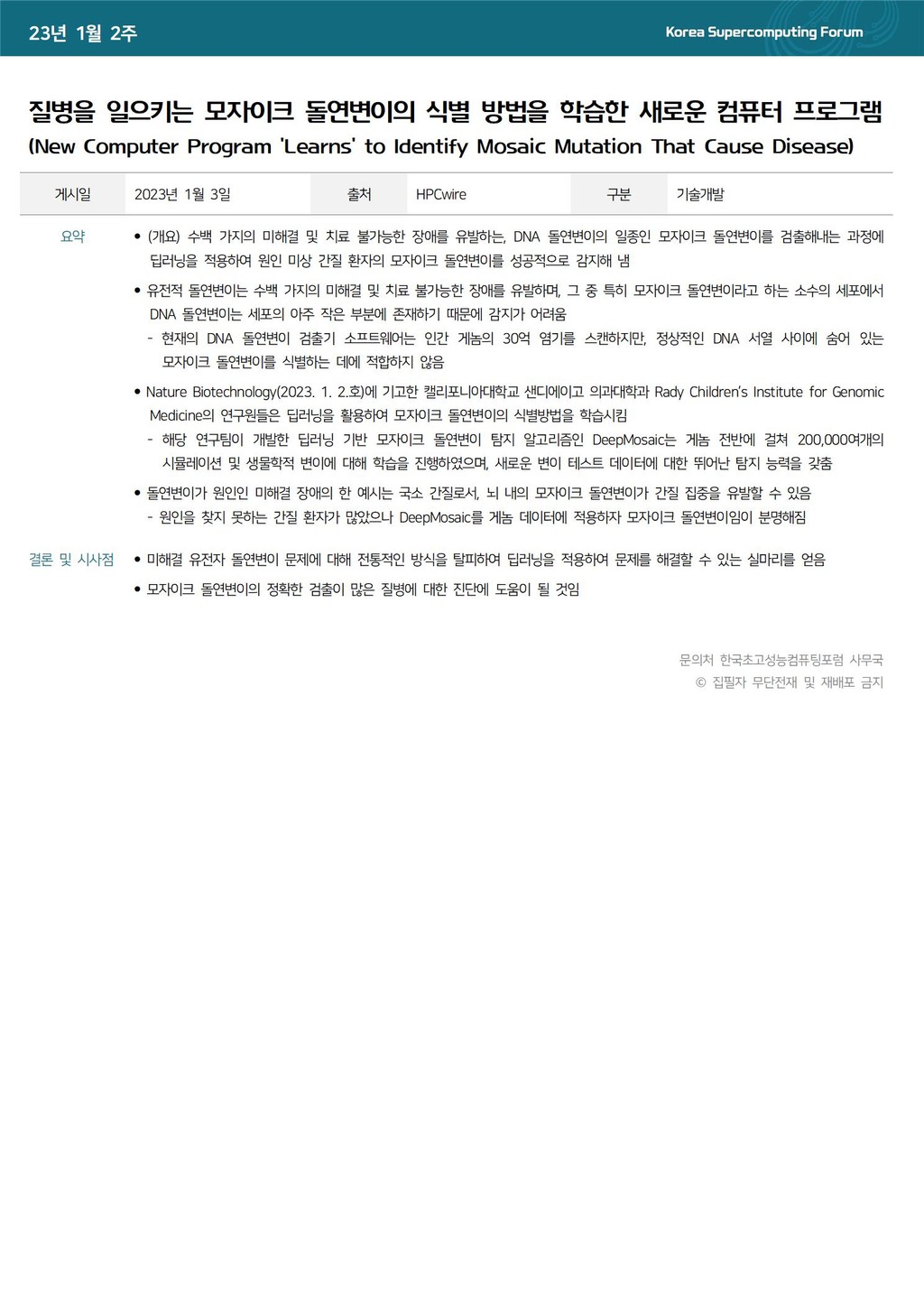 질병을 일으키는 모자이크 돌연변이의 식별방법을 학습한 새로운 컴퓨터 프로그램