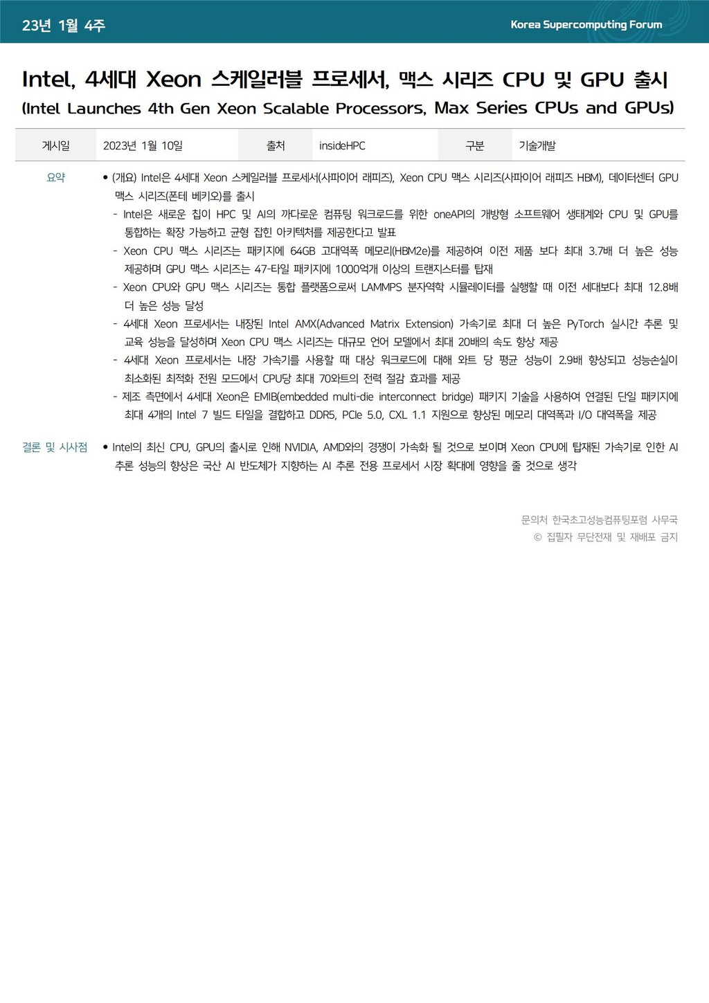 Intel, 4세대 Xeon 스케일러블 프로세서, 맥스 시리즈 CPU 및 GPU 출시