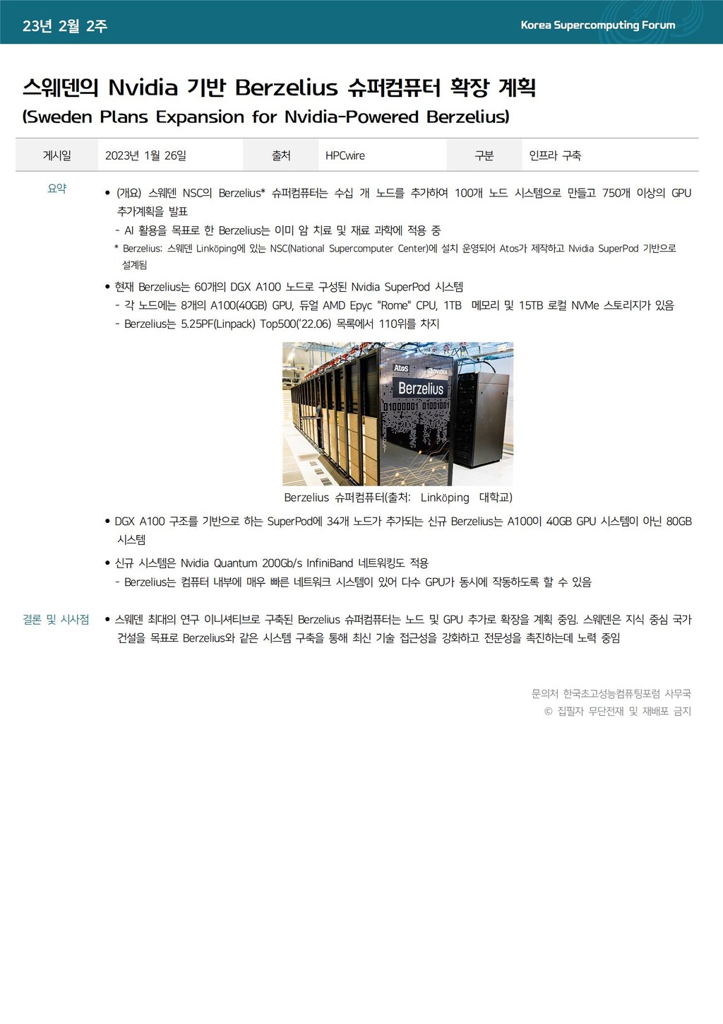 스웨덴의 Nvidia 기반 Berzelius 슈퍼컴퓨터 확장 계획