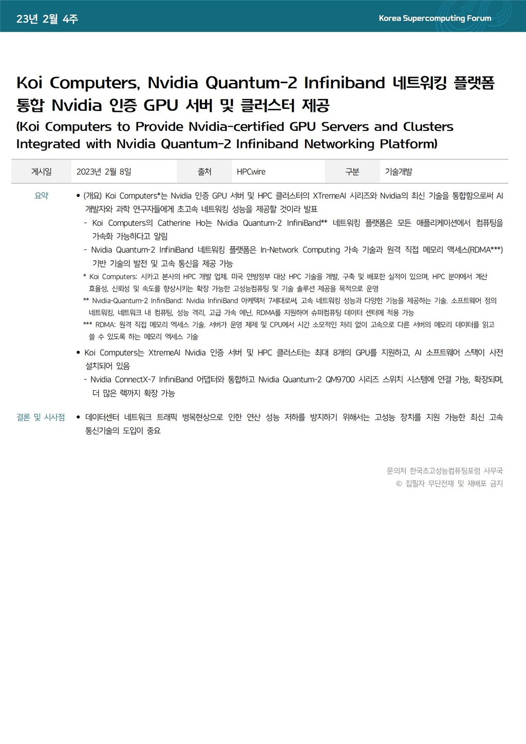 Koi Computers, Nvidia Quantum-2 Infiniband 네트워킹 플랫폼 통합 Nvidia 인증 GPU 서버 및 클러스터 제공