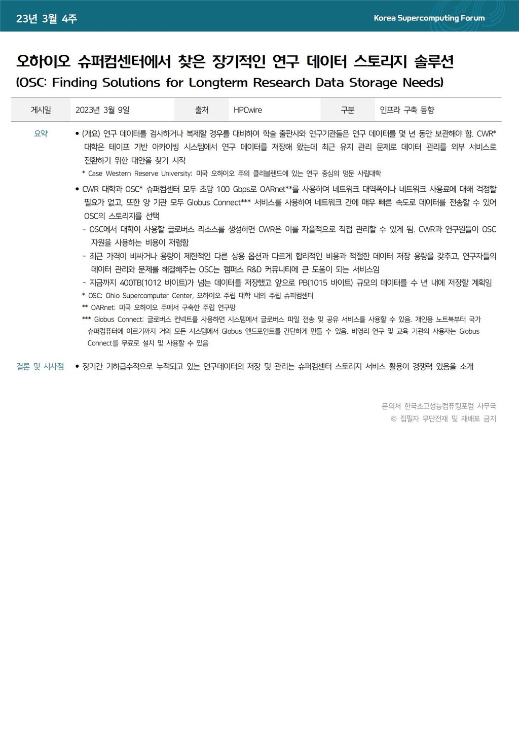 오하이오 슈퍼컴센터에서 찾은 장기적인 연구 데이터 스토리지 솔루션