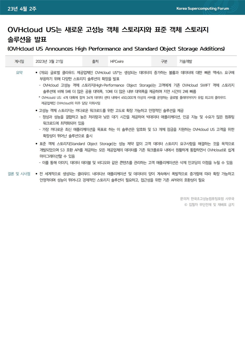 OVHcloud US는 새로운 고성능 객체 스토리지와 표준 객체 스토리지 솔루션을 발표