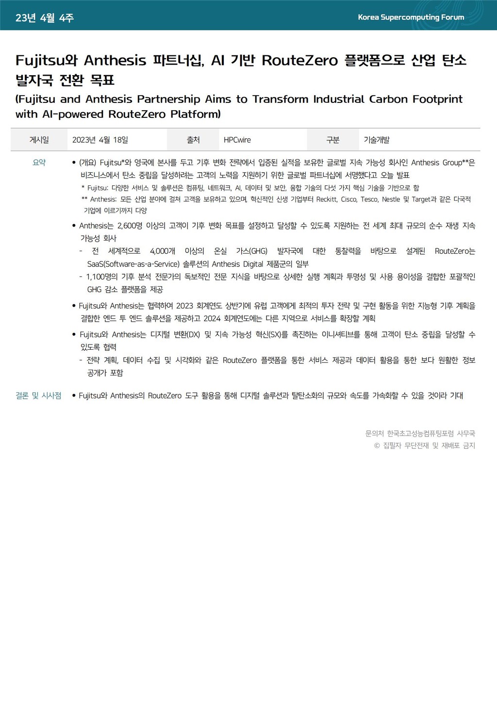 Fujitsu와 Anthesis 파트너십, AI 기반 RouteZero 플랫폼으로 산업 탄소 발자국 전환 목표