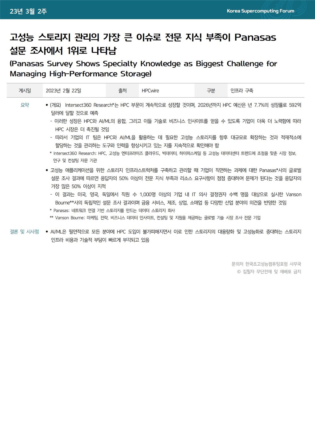 고성능 스토리지 관리의 가장 큰 이슈로 전문 지식 부족이 Panasas 설문 조사에서 1위로 나타남