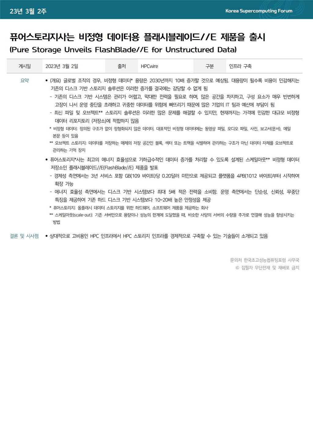 퓨어스토리지사는 비정형 데이터용 플래시블레이드//E 제품을 출시