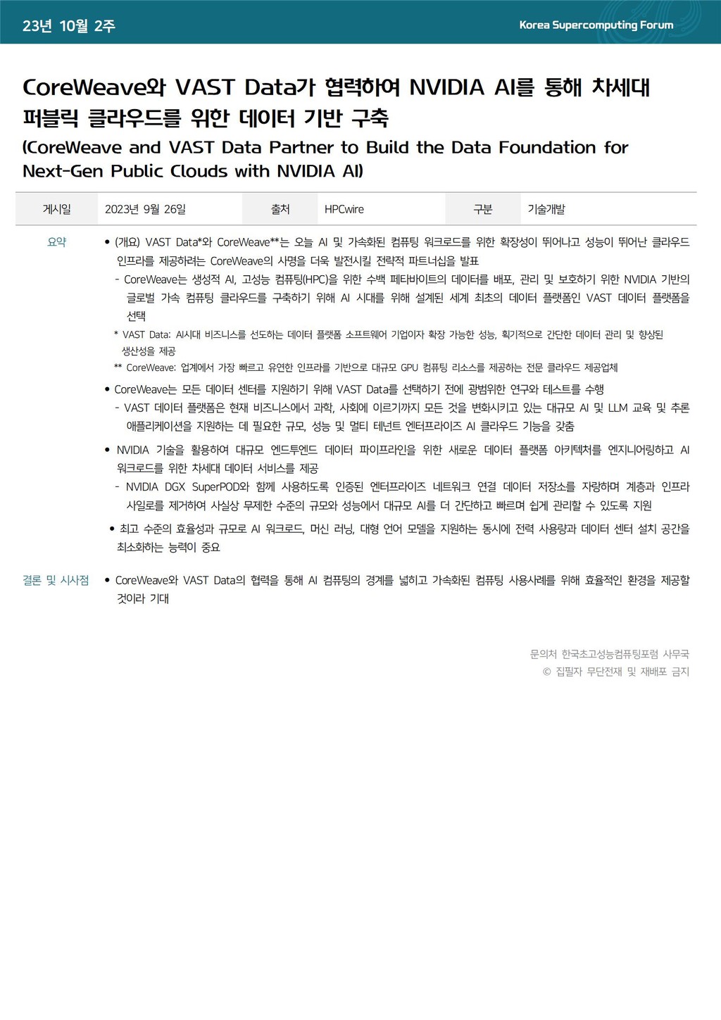 CoreWeave와 VAST Data가 협력하여 NVIDIA AI를 통해 차세대 퍼블릭 클라우드를 위한 데이터 기반 구축