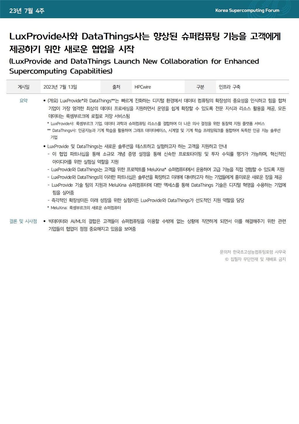 LuxProvide사와 DataThings사는 향상된 슈퍼컴퓨팅 기능을 고객에게 제공하기위한 새로운 협업을 시작