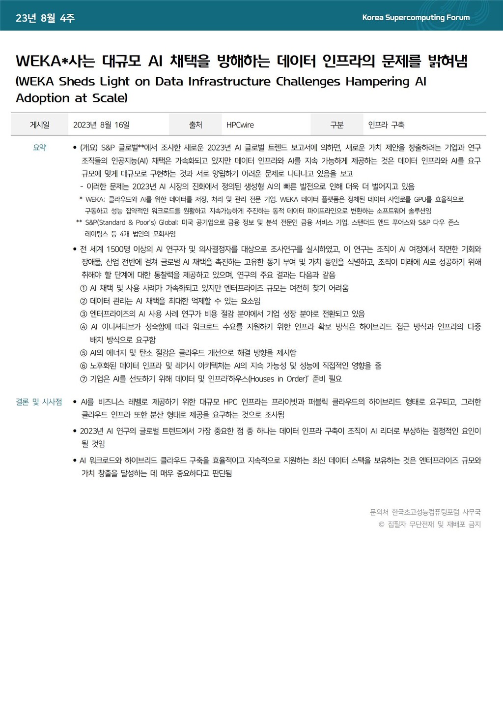 WEKA*사는 대규모 AI 채택을 방해하는 데이터 인프라의 문제를 밝혀냄