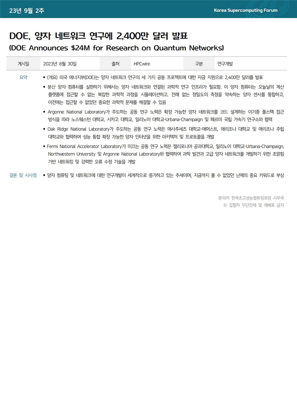DOE, 양자 네트워크 연구에 2,400만 달러 발표