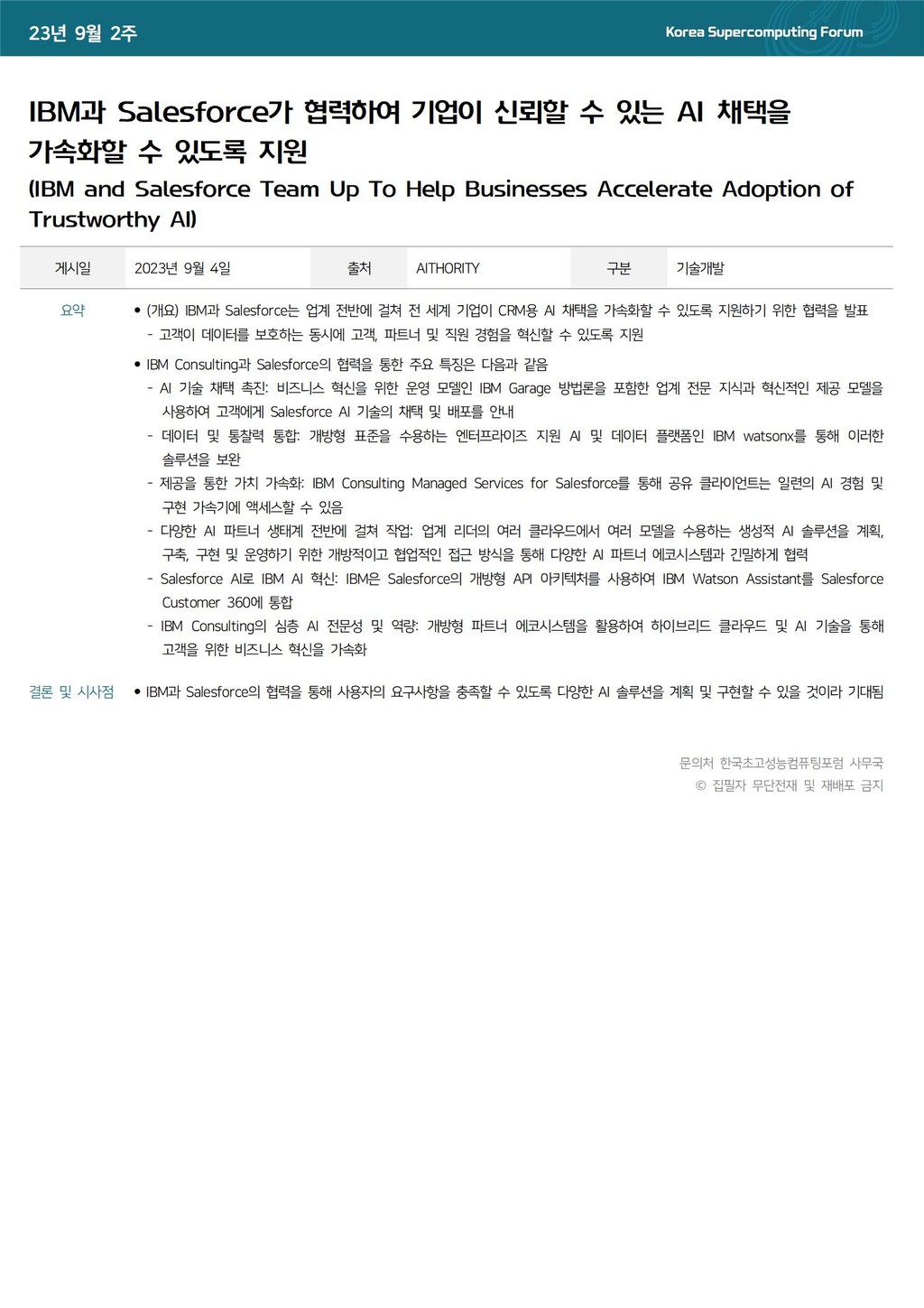 IBM과 Salesforce가 협력하여 기업이 신뢰할 수 있는 AI 채택을 가속화할 수 있도록 지원