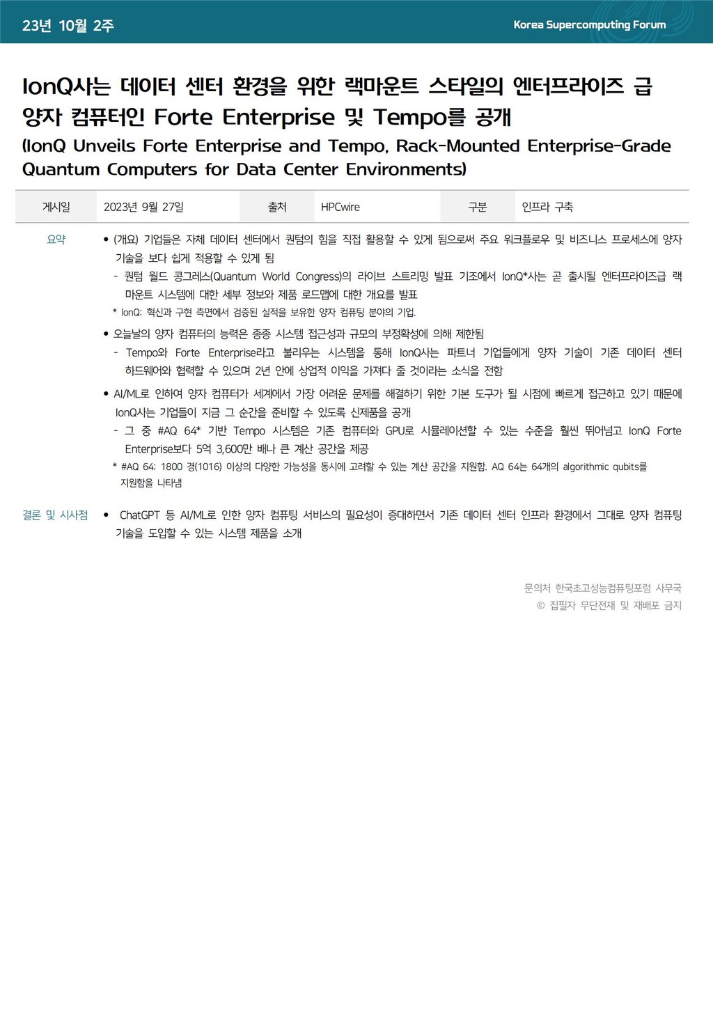 IonQ사는 데이터 센터 환경을 위한 랙마운트 스타일의 엔터프라이즈 급 양자 컴퓨터인 Forte Enterprise 및 Tempo를 공개