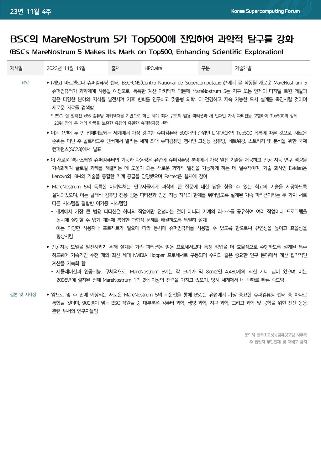 BSC의 MareNostrum 5가 Top500에 진입하여 과학적 탐구를 강화