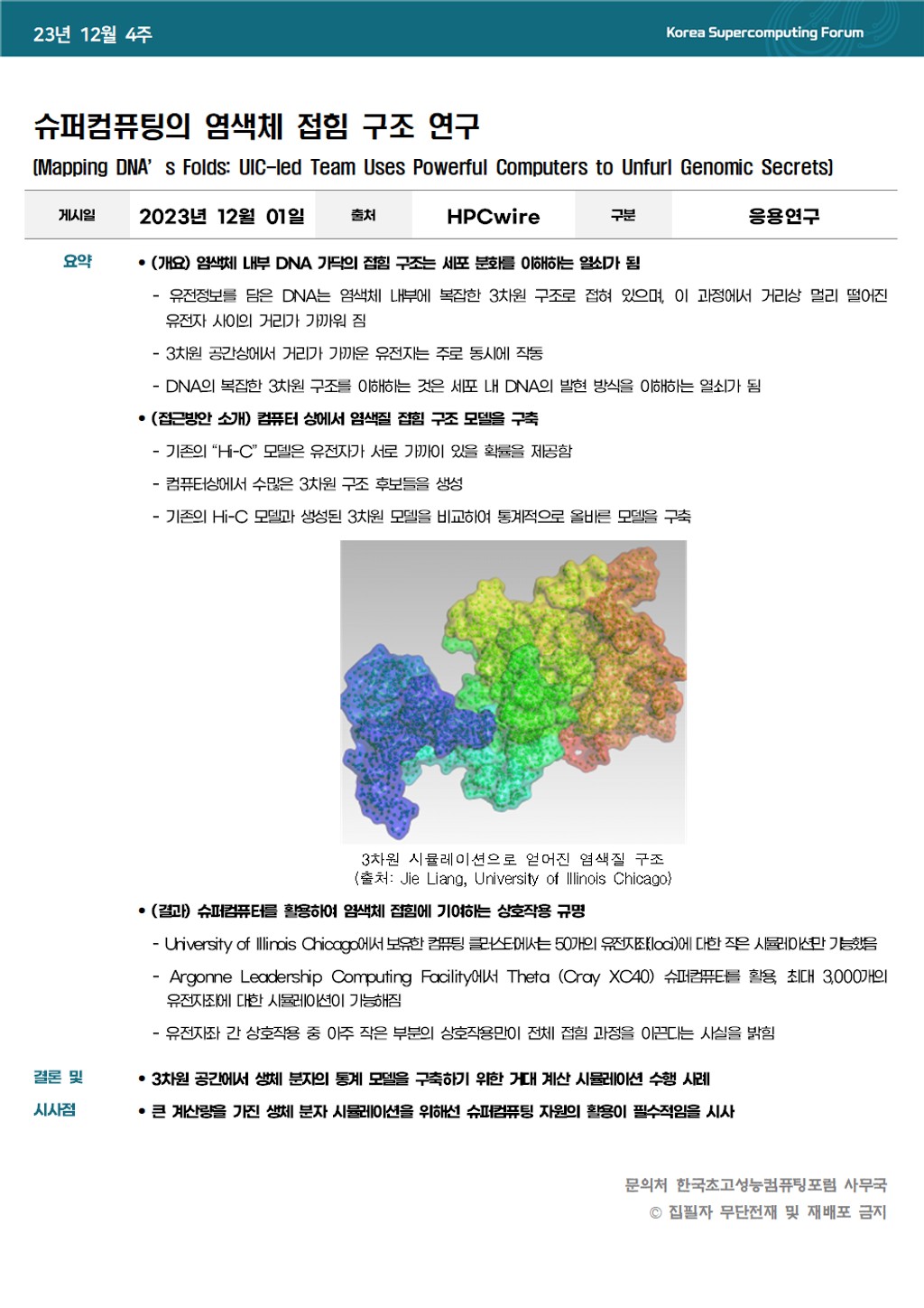 슈퍼컴퓨팅의 염색체 접힘 구조 연구