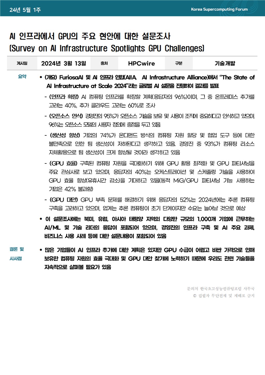 AI 인프라에서 GPU의 주요 현안에 대한 설문조사