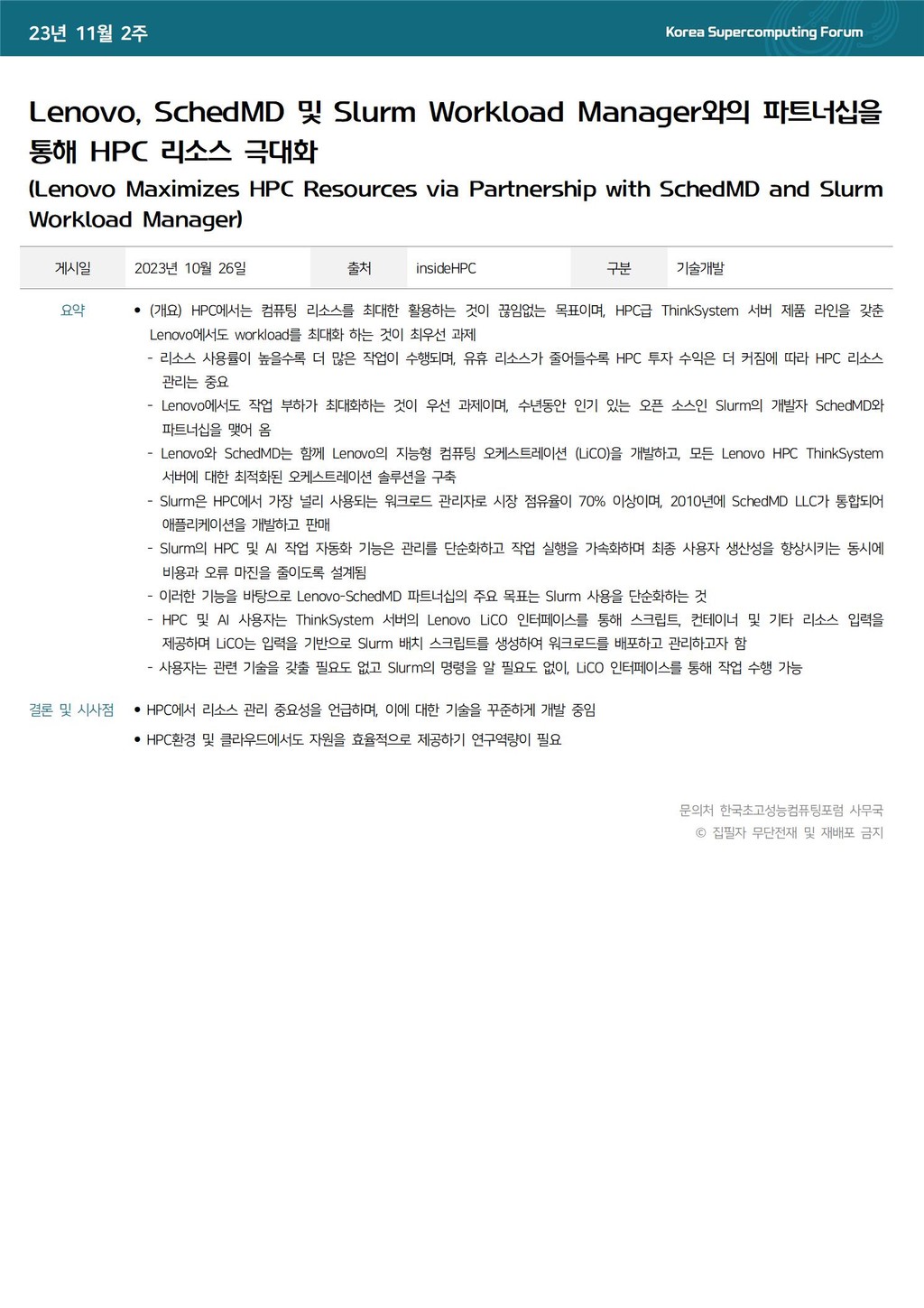 Lenovo, SchedMD 및 Slurm Workload Manager와의 파트너십을 통해 HPC 리소스 극대화