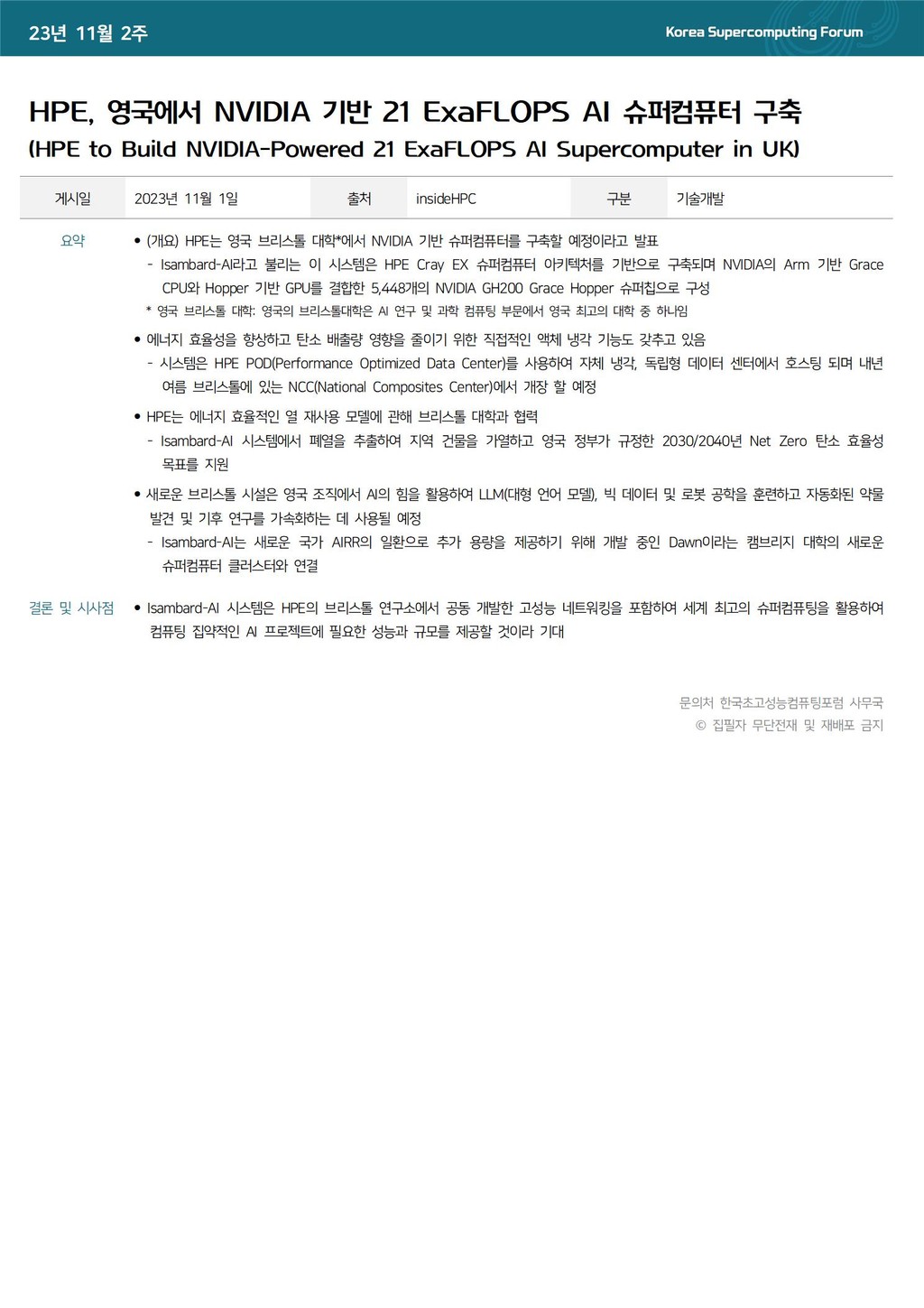 HPE, 영국에서 NVIDIA 기반 21 ExaFLOPS AI 슈퍼컴퓨터 구축