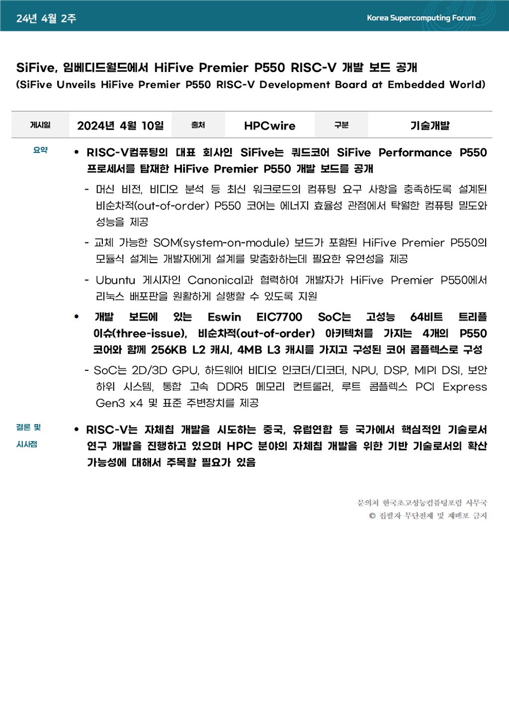 SiFive, 임베디드월드에서 HiFive Premier P550 RISC-V 개발 보드 공개