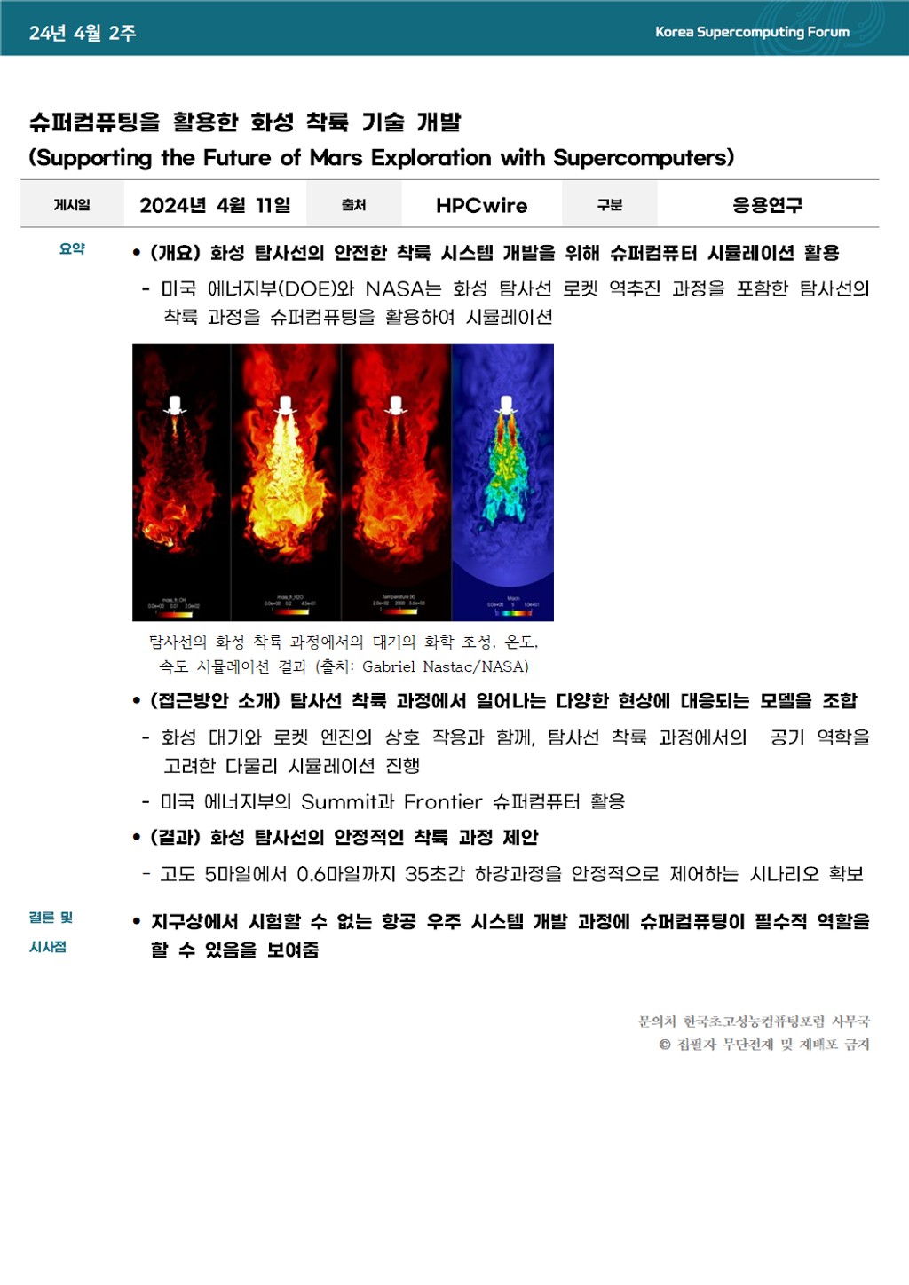 슈퍼컴퓨팅을 활용한 화성 착륙 기술 개발