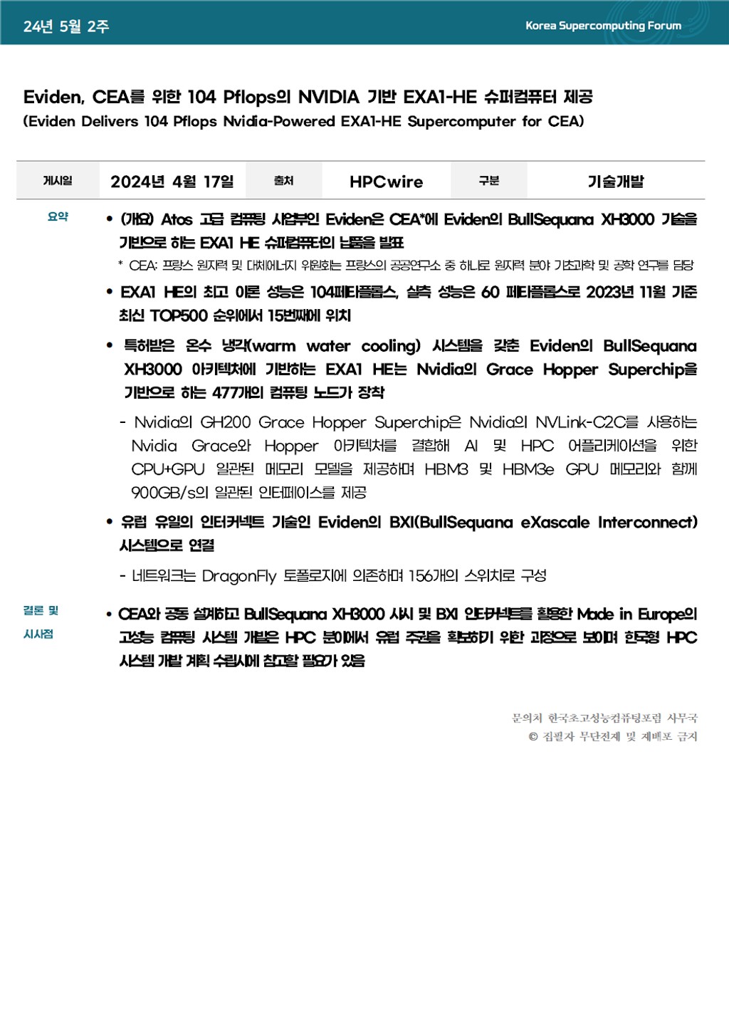 Eviden, CEA를 위한 104Pflops의 NVIDIA 기반 EXA1-HE 슈퍼컴퓨터 제공