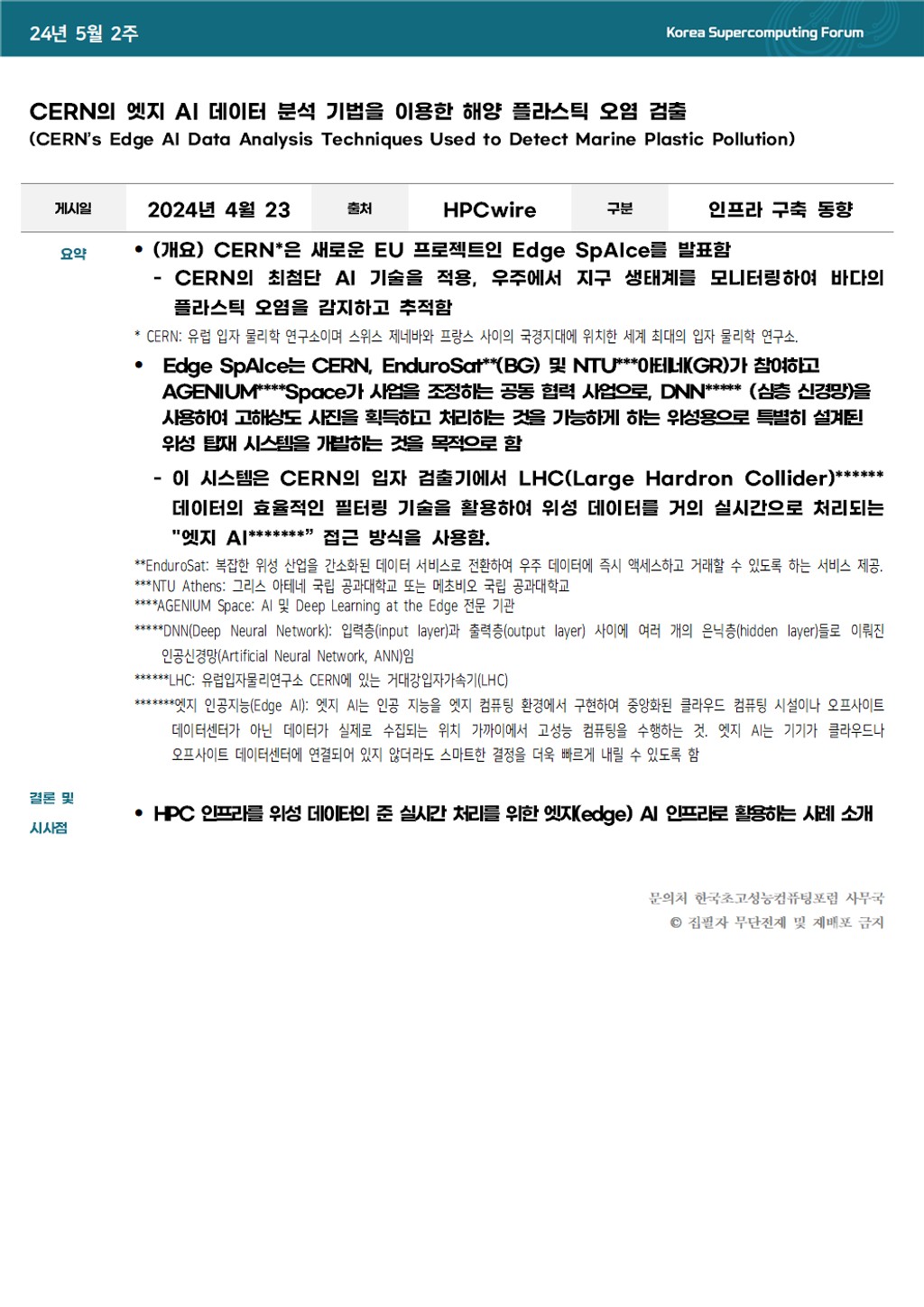 CERN의 엣지 AI 데이터 분석 기법을 이용한 해양 플라스틱 오염 검출