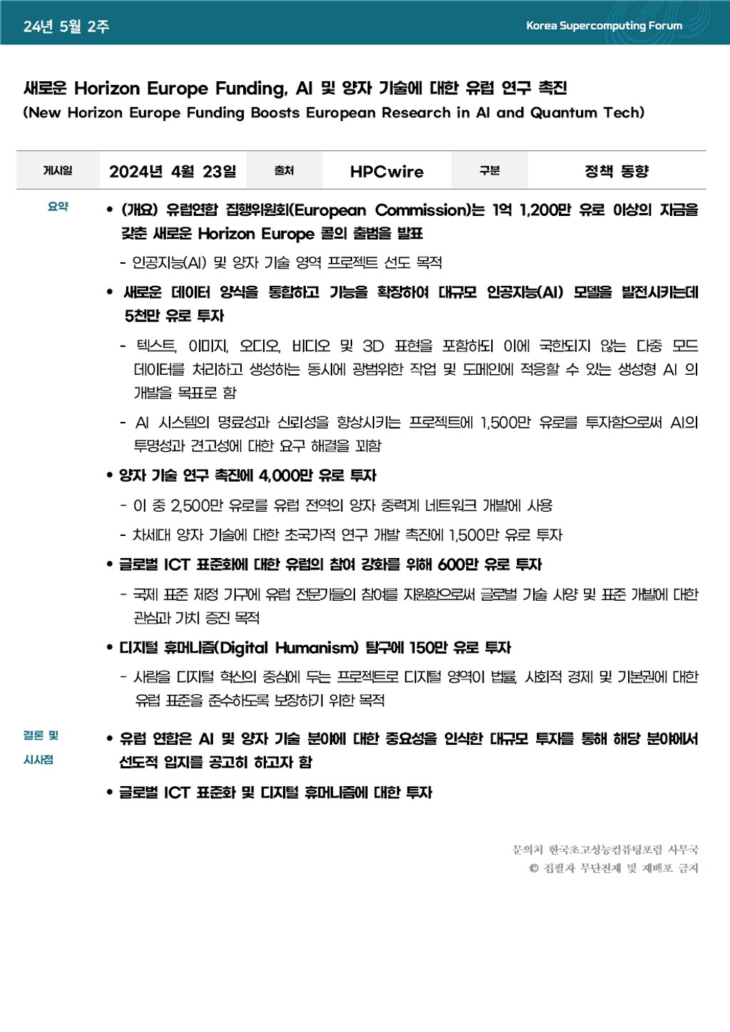 새로운 Horizon Europe Funding, AI 및 양자 기술에 대한 유럽 연구 촉진