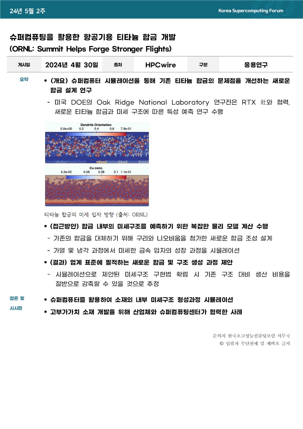 슈퍼컴퓨팅을 활용한 항공기용 티타늄 합금 개발