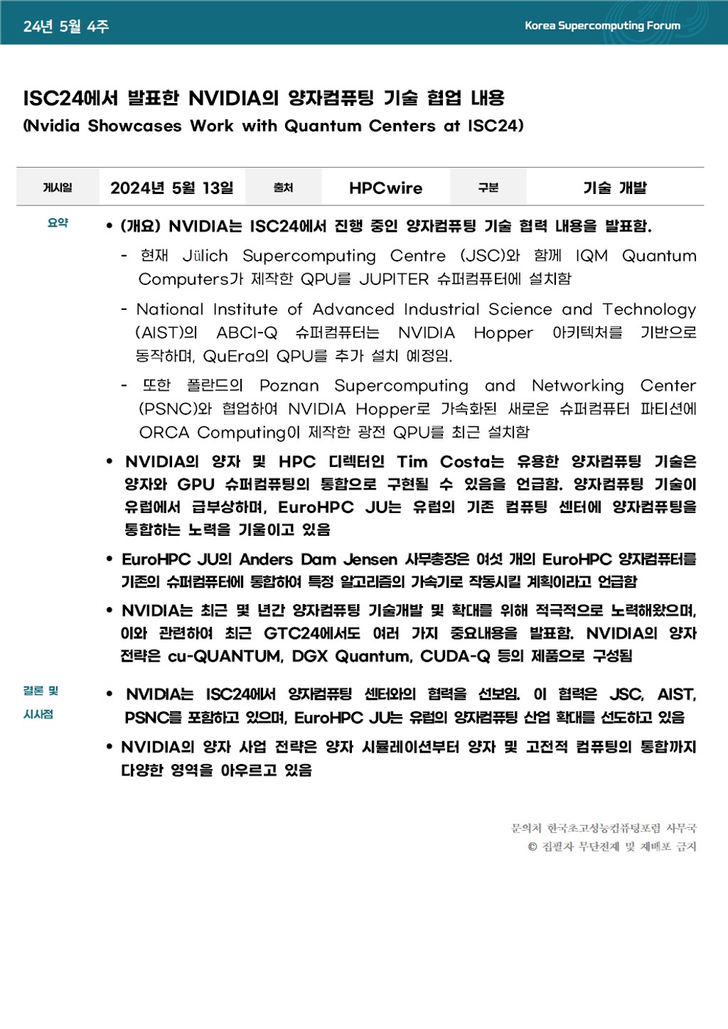ISC24에서 발표한 NVIDIA의 양자컴퓨팅 기술 협업 내용