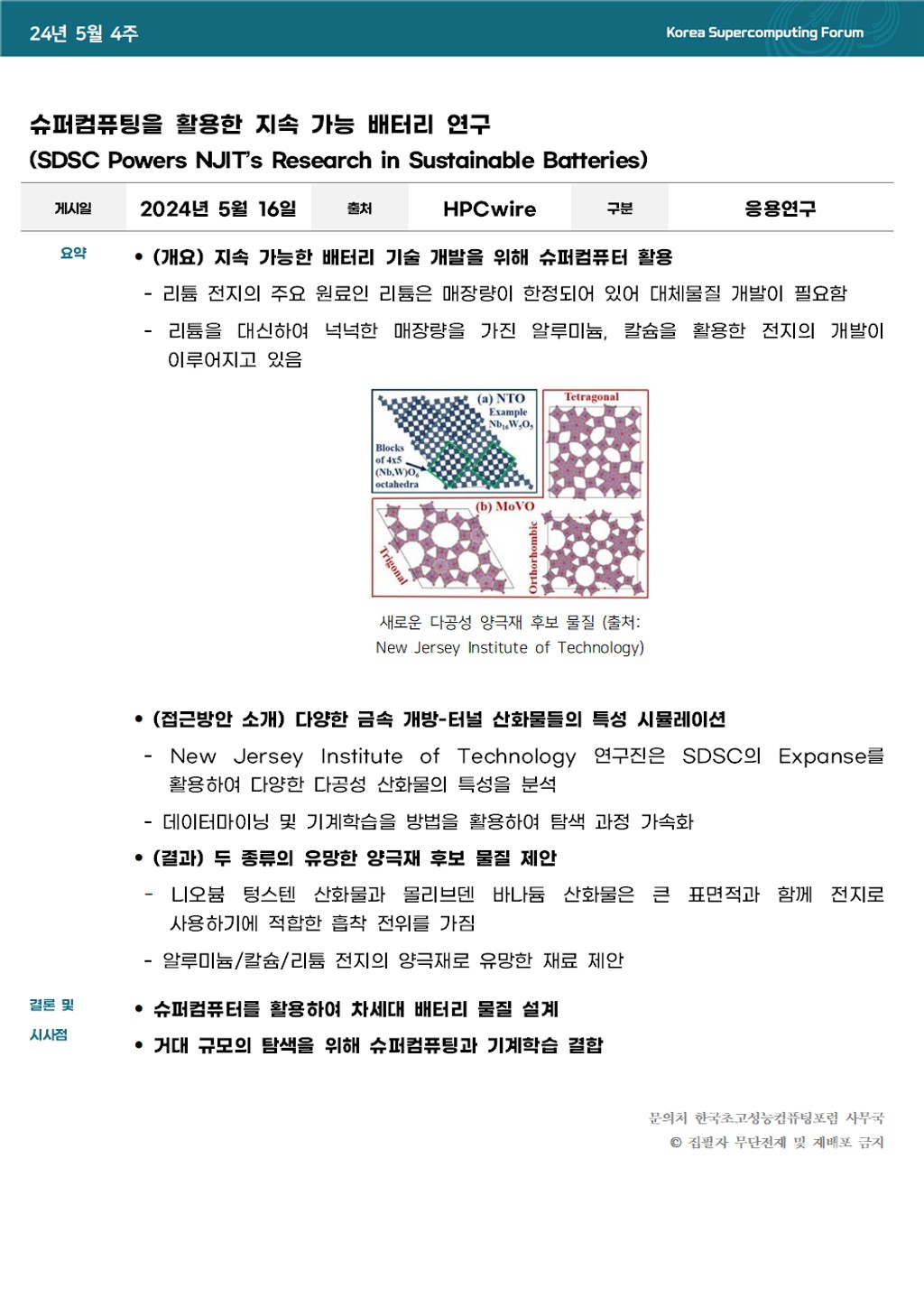 슈퍼컴퓨팅을 활용한 지속 가능 배터리 연구