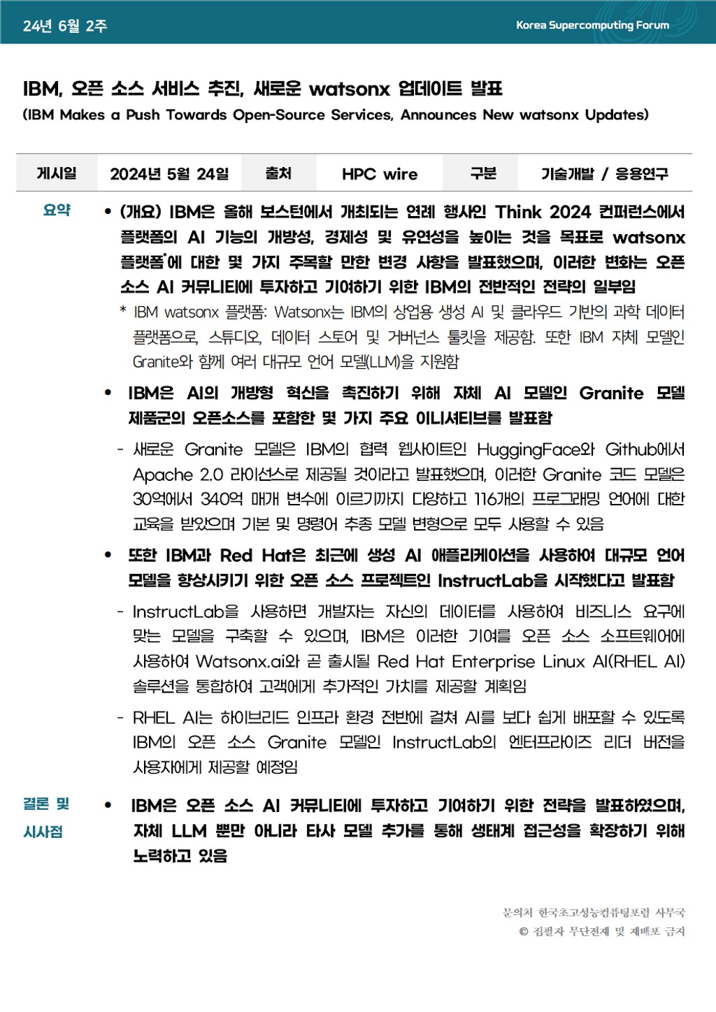 IBM, 오픈 소스 서비스 추진, 새로운 Watsonx 업데이트 발표