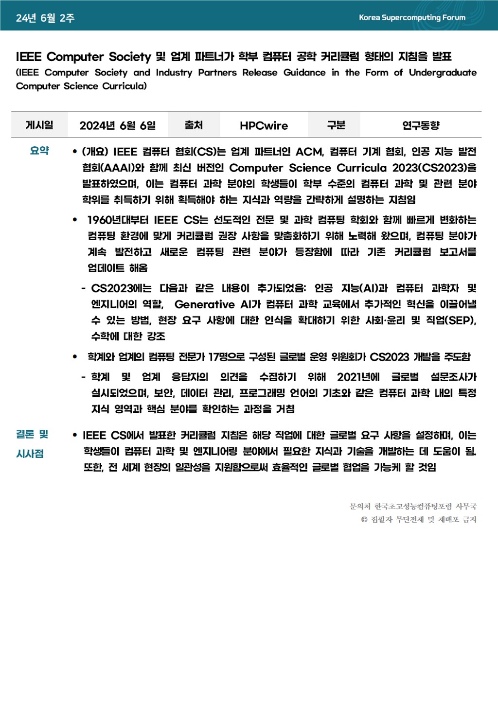 IEEE Computer Society 및 업계 파트너가 학부 컴퓨터 공학 커리큘럼 형태의 지침을 발표