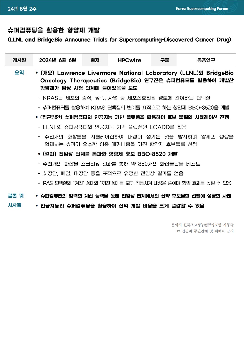 슈퍼컴퓨팅을 활용한 항암제 개발