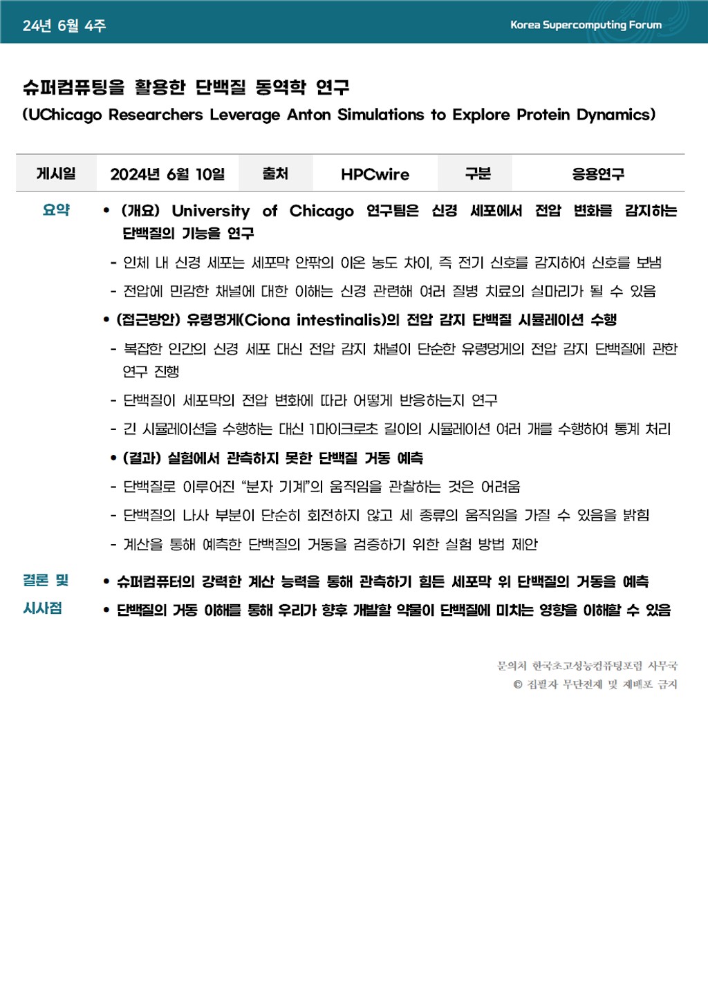 슈퍼컴퓨팅을 활용한 단백질 동역학 연구