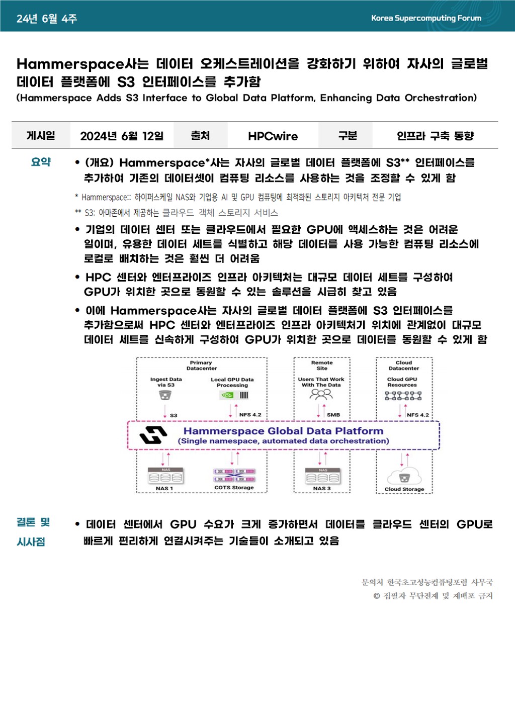Hammerspace사는 데이터 오케스트레이션을 강화하기 위하여 자사의 글로벌 데이터 플랫폼에 S3 인터페이스를 추가함