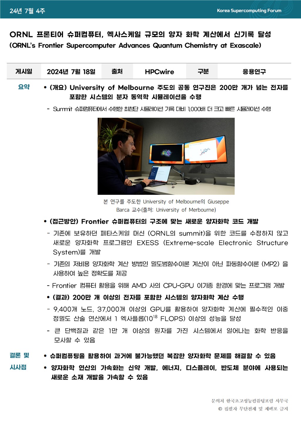 ORNL 프론티어 슈퍼컴퓨터, 엑사스케일 규모의 양자 화학 계산에서 신기록 달성