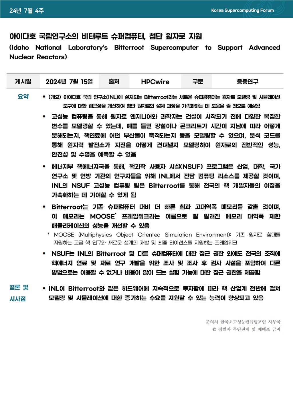 아이다호 국립연구소의 비터루트 슈퍼컴퓨터, 첨단 원자로 지원